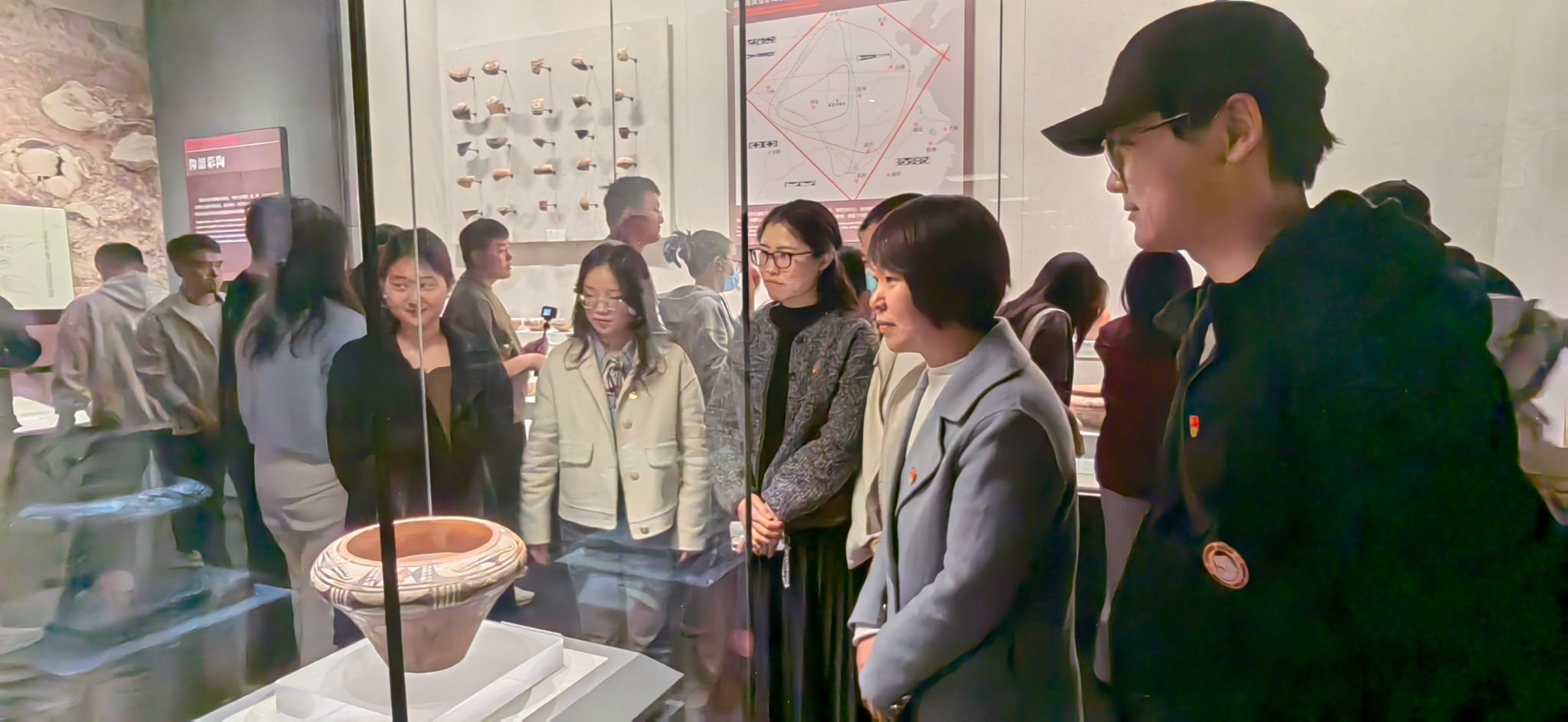 作为中原文化的核心载体,河南省博物院馆藏文物跨越九千年历史,涵盖从史前文明到近现代的珍贵文物。参观过程中,党员们沿着时间脉络,逐一点亮性别平等的历史灯塔:从仰韶文化彩陶上象征生命孕育的纹饰,到商代妇好墓出土的青铜器与玉器;从汉代画像石中展现的纺织女工群像,到唐代三彩俑塑造的飒爽女骑手形象,一件件文物生动诠释了中原大地自古以来女性在社会生产、文化创造中的卓越贡献。这些展品不仅是历史的见证,更是性别平等理念在中华文明中的生动体现。