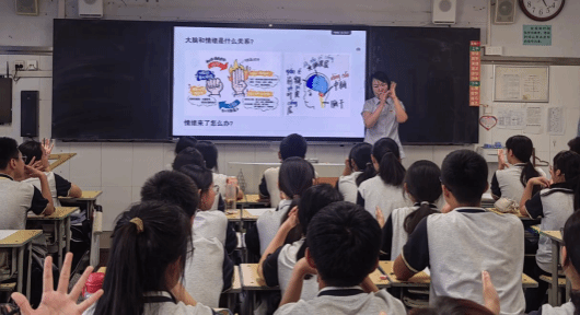 讲座现场气氛热烈,同学们积极参与。在“情绪侦察总动员”环节,大家通过观察和记录情绪,开启了对情绪的探索之旅;在“大脑探秘研究所”中,同学们了解到大脑和情绪的关系;在“情绪调节训练营”环节中,深呼吸放松法、情绪转移法等实用技巧让同学们眼前一亮,现场练习更是让大家感受到了情绪调节的神奇效果。到了“校园实战演练场”环节,同学们将所学的“拆弹专家”技巧运用到实际场景的演练过程中,在轻松愉快的氛围中学会了如何做情绪的主人。