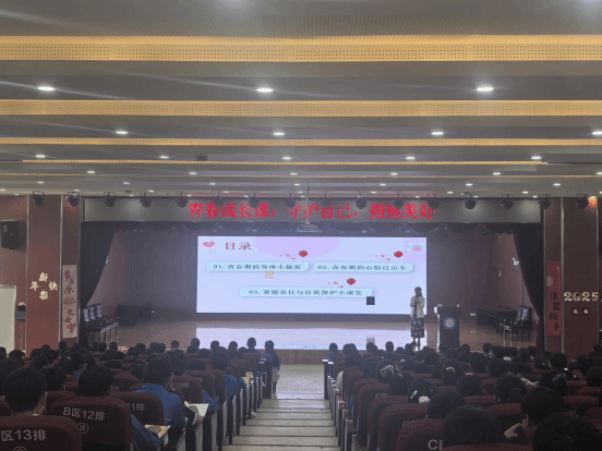 讲座过程中,刘士超老师立足青少年认知特点,通过情景互动的立体化教学模式进行讲授。在“青春期身体小秘密”环节,用图文并茂的方式,引导学生以科学视角看待发育;“青春期的心情过山车”单元,通过启发式互动与案例分析的模式,教会学生学会识别和管理心理波动;“爱情责任与自我保护”板块,通过互动游戏,将责任感教育与自我保护意识融入生活场景。层层递进的教学设计,深入浅出地帮助同学们了解青春期。