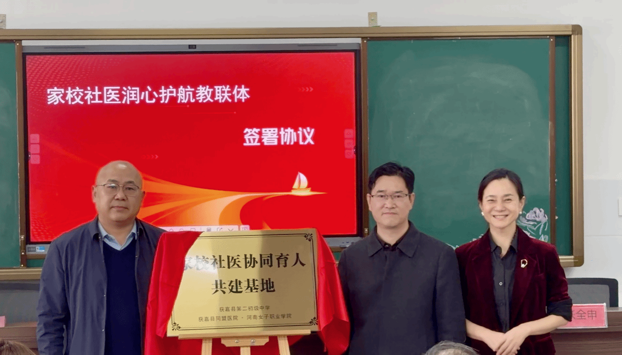 为深化“家校社医”协同育人机制,筑牢青少年身心健康成长防线,切实履行高等职业教育扎根地方、赋能基层的使命担当,10月31日,我校与获嘉县第二初级中学、新乡同盟医院三方携手,在获嘉二初隆重举行“家校社医协同育人教联体”启动仪式,共同签署共建协议,正式拉开“教育筑基、医疗护航、家校联动、社会协同”的育人新帷幕。