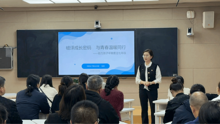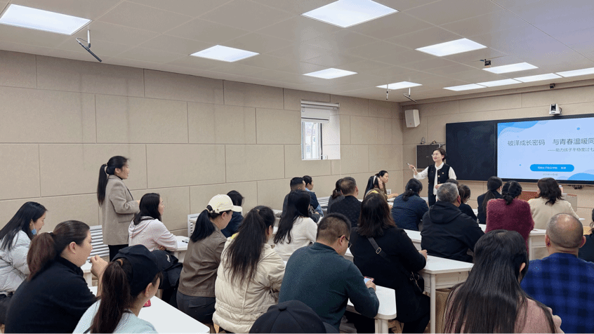为深化家校协同育人实效,发挥我校在家庭教育领域的实践与研究优势,11月4日,我校木棉书院“纽扣”项目走进郑州群英中学,以“破译成长密码,与青春温暖同行”为主题,为该校学生家长开展专题讲座,精准破解学生家庭教育的痛点与难点。