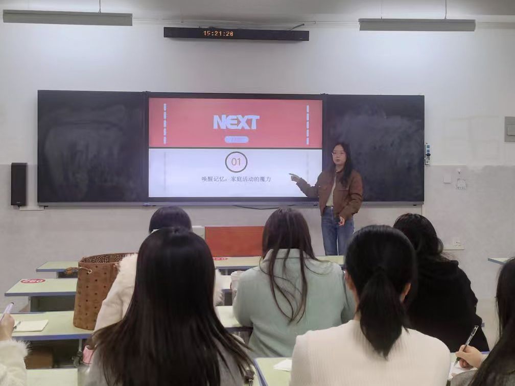 任培培老师以“家庭关系建设”为主线,通过家庭小剧场、关系温度计、快乐沟通法等创新教学方法,构建了从认知到实践的全链条教学体系。课程以家庭关系核心理论为基础,结合“家庭关系树”、情景模拟等互动环节,系统阐释了健康家庭关系的构建路径。