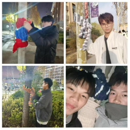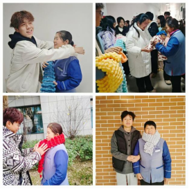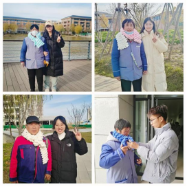 在后勤服务中心的大力支持下,学生们为长期辛勤工作的后勤服务人员围上自己亲手编织的围巾,为他们送去了冬日里的一份温暖。