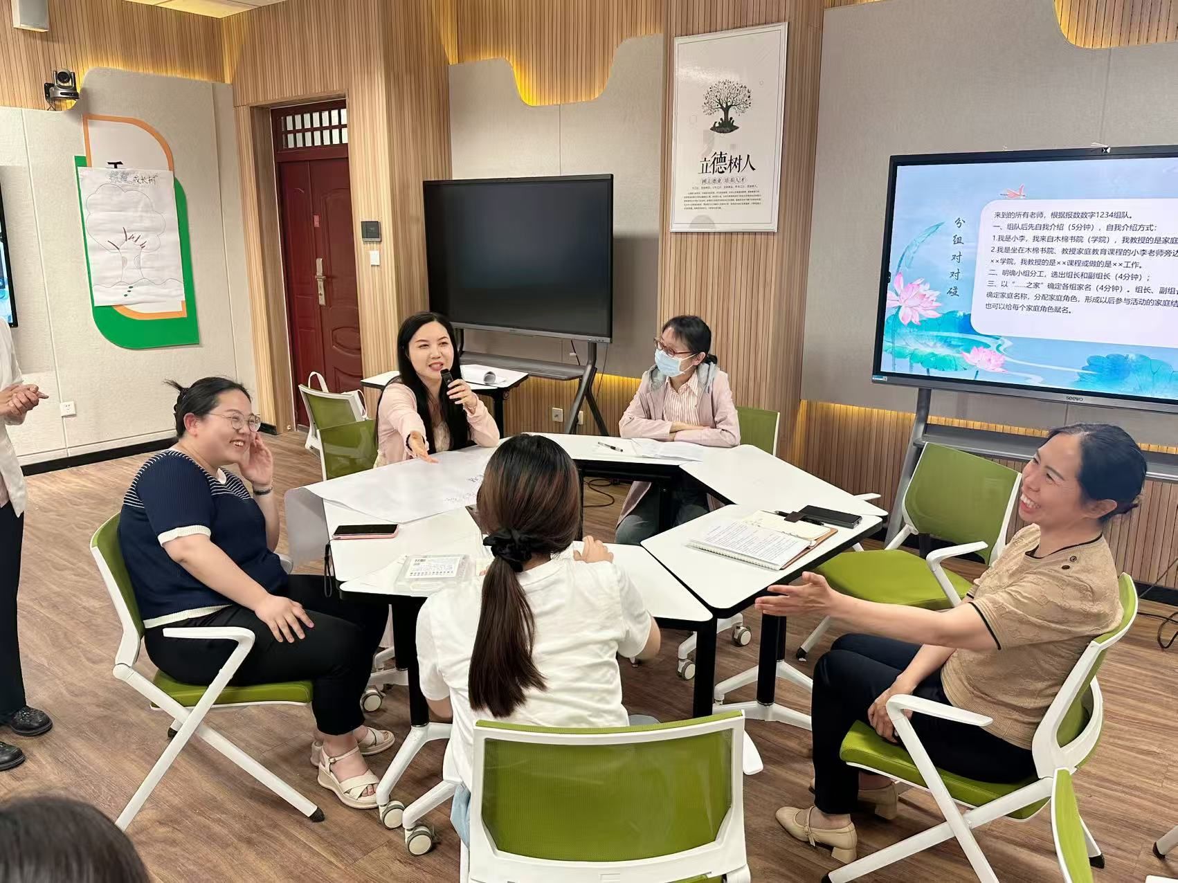 活动伊始,通过轻松愉快的自我介绍,让原本彼此陌生的教师们迅速拉近了距离。随后的“分组对对碰”环节,现场气氛热烈而欢快,教师们热情洋溢地组建起自己的“临时小家庭”,在互动中,初步体验了家庭协作的默契与乐趣。